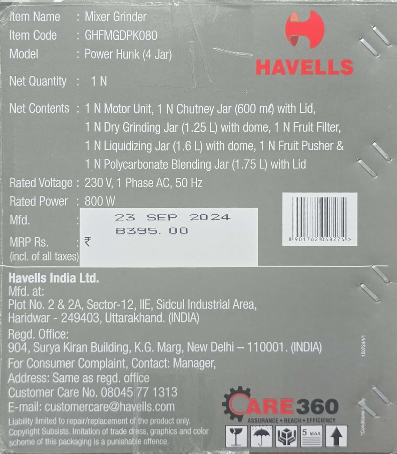 Havells, the prominent brand for electronic appliances in India, offers a wide range of food preparation appliances at great prices online. If we talk about mixer grinders, Havells brings in a choice of best-quality mixer grinders that are built to last long. The efficient mixer grinders from Havells are stylish – available in many color options – to complement the interiors of your kitchen. To ease the process of food preparation, Havells mixer grinders are the best bet for the convenience they offer. With them, you can grind spices, blend sauces, make purees and do so many other things in a matter of seconds. Their heavy duty motor, along with stainless steel jar and blades, makes these tedious jobs of grinding and pureeing really easy. Moreover, the warranty from Havells India Ld. comes as a plus.